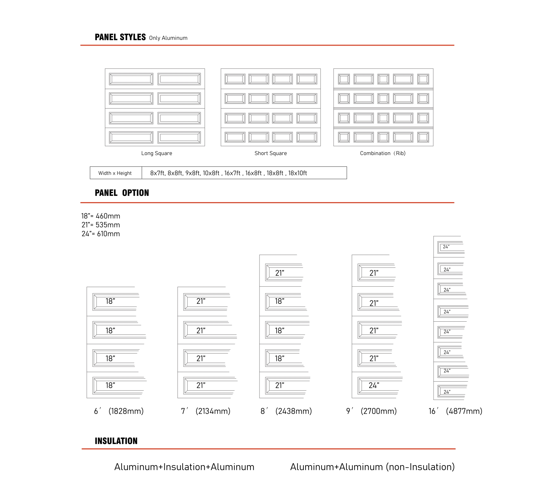 Constructed from premium 6063-T6 aluminum alloy panels, Design offers minimalist aesthetics and easy cleaning. Compatible with various glass window materials for installation and maintenance convenience. Sectional upward sliding mechanism saves garage space.